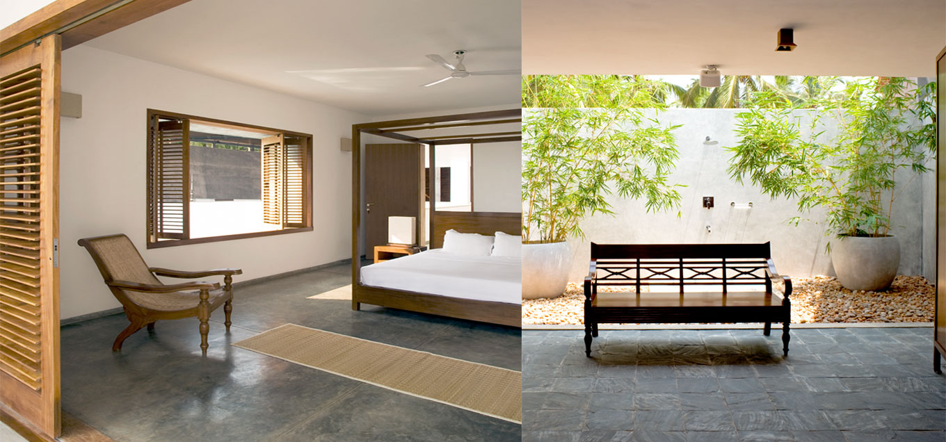 Vast bedrooms and bathrooms with rainforest showers open to the sky